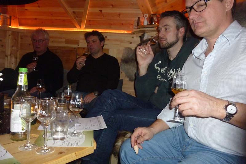 ***** Die Teilnehmerzahl war auf 6 begrenzt. Der Preis betrug 30 Euro pro Person. Unsere Tasting-Angebot beinhaltete einen Snack (belegte Brote), sowie ausreichend Wasser. Wir saßen in einem Pavillon am Feuer und ließen uns die o.g. Whiskys schmecken, ganz egal, wie die Außentemperaturen aussahen (um die 0 Grad)...